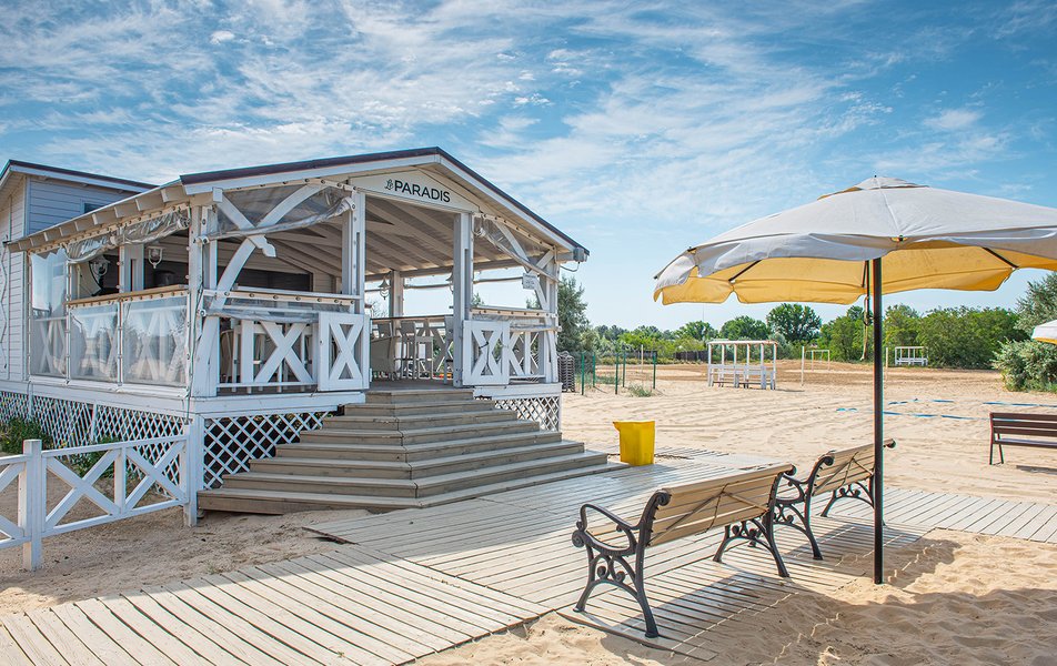 Под навесом бара гости остынут от жаркого солнца, наберутся сил для получения новой порции солнечных лучей и загара.